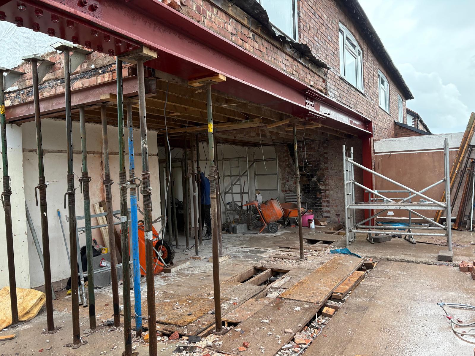Located in the heart of Prenton, this transformative scheme centred on the complete rebuild of an existing extension, accompanied by the removal of chimneys and key internal load-bearing walls. The introduction and insulation of a 10-metre structural steel beam enabled a dramatic open-plan layout, enhancing both flow and functionality. The result is a renewed living space that balances robust structural engineering with refined modern living.
