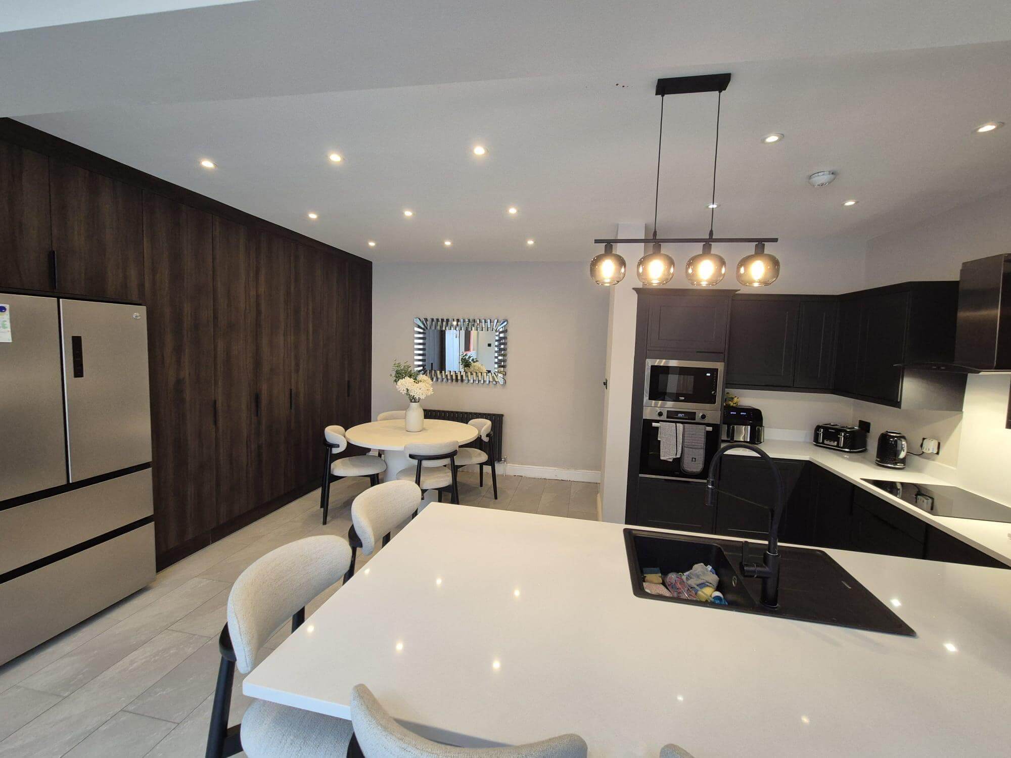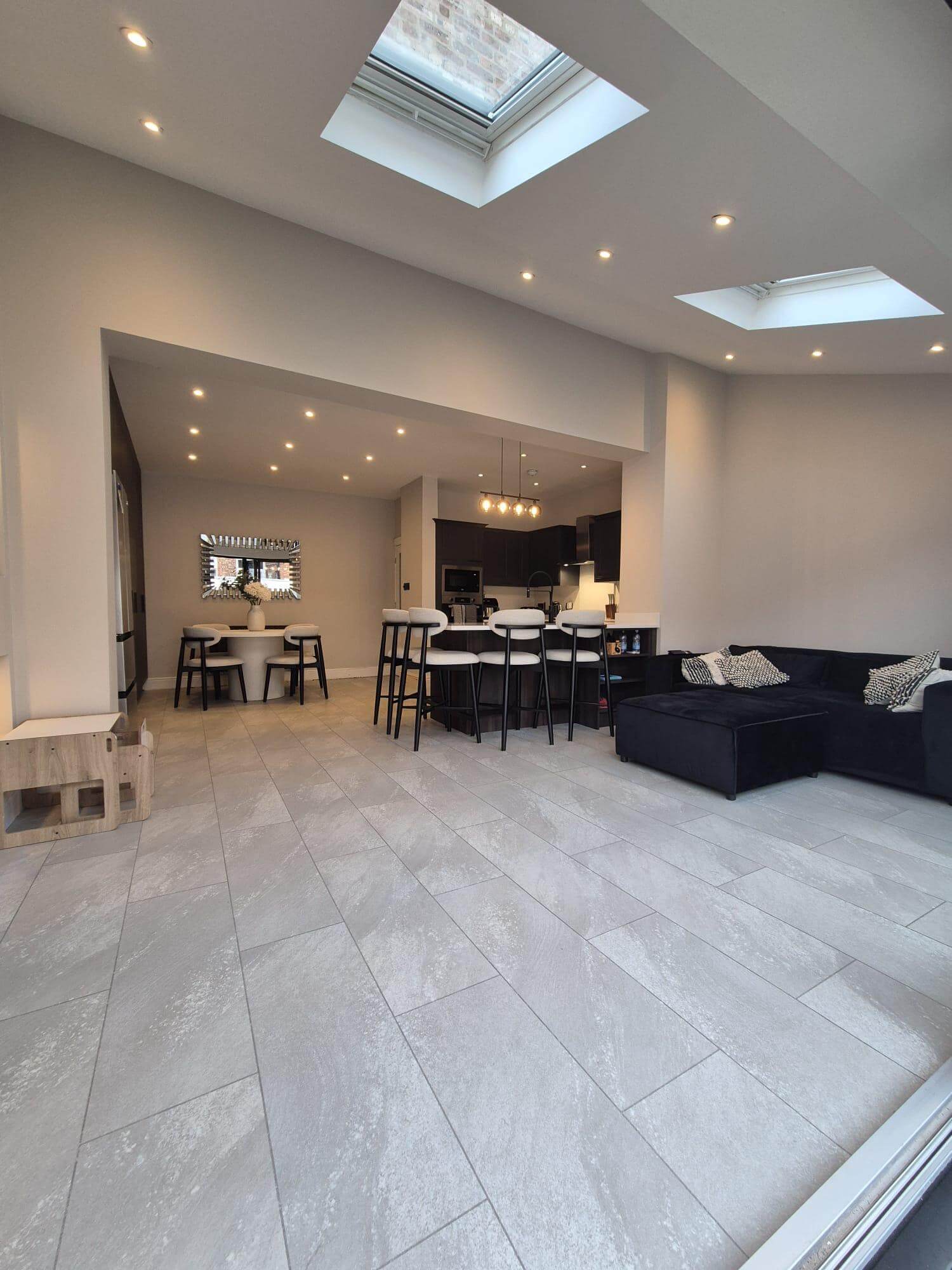A rear extension and internal knock-through redefined the home’s social spaces, seamlessly connecting interior and garden. Alongside a full garden revitalisation, the works created a brighter, more expansive environment that encourages year-round indoor-outdoor living.